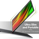 • قابل حمل و سبک‌وزن با وزن کمتر از ۷۰۰ گرم و ضخامت کمتر از ۱ سانتی‌متر، این مانیتور به راحتی در هر کیف لپ‌تاپ یا کوله‌پشتی جا می‌شود.