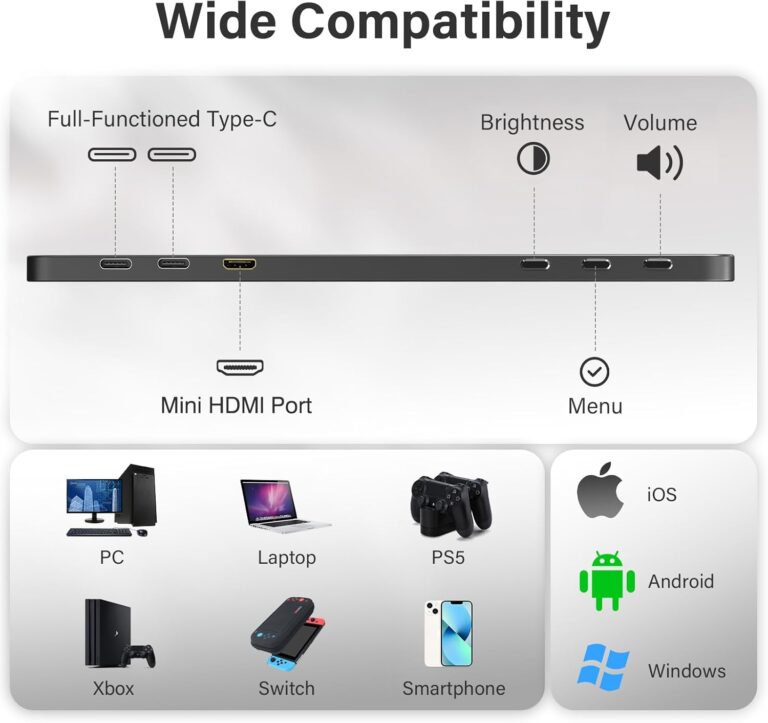 یکی از ویژگی‌های برجسته Lepow 15.6 اینچی، قابلیت همگام‌سازی سریع و بدون درایور با انواع دستگاه‌هاست. تنها با یک کابل USB-C یا HDMI می‌توانید دستگاه خود را متصل کرده و بلافاصله استفاده کنید. هیچ دردسری برای نصب یا تنظیمات پیچیده نخواهید داشت.