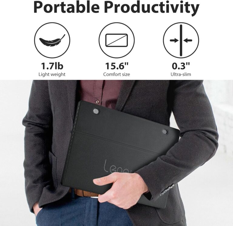 مانیتور Lepow با صفحه‌نمایش ۱۵.۶ اینچی و طراحی بسیار سبک و باریک، به راحتی در کیف لپ‌تاپ یا کوله‌پشتی شما جا می‌شود. این ویژگی آن را به گزینه‌ای عالی برای افرادی تبدیل کرده که دائماً در حال جابه‌جایی هستند یا به یک نمایشگر دوم در هر مکان نیاز دارند.